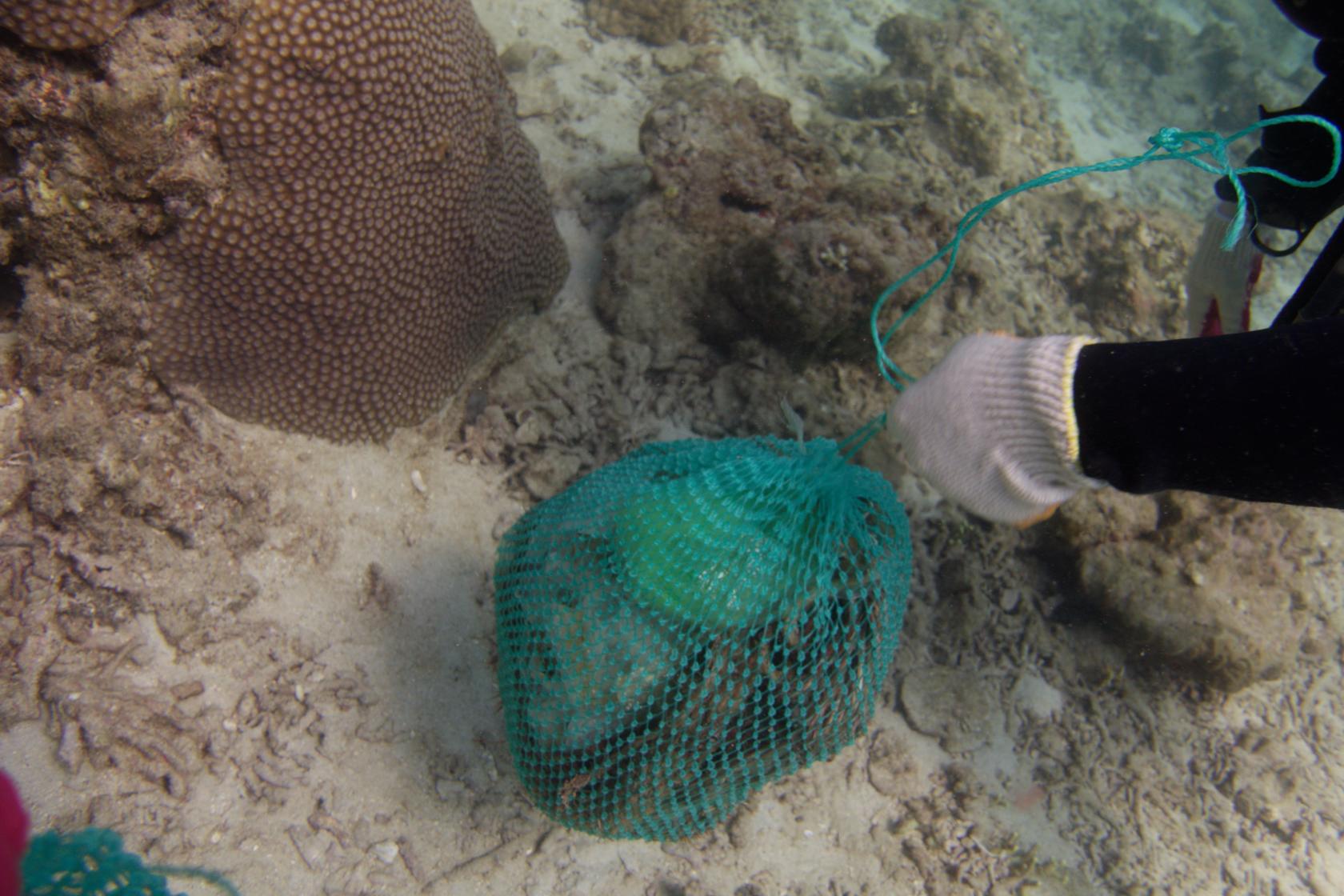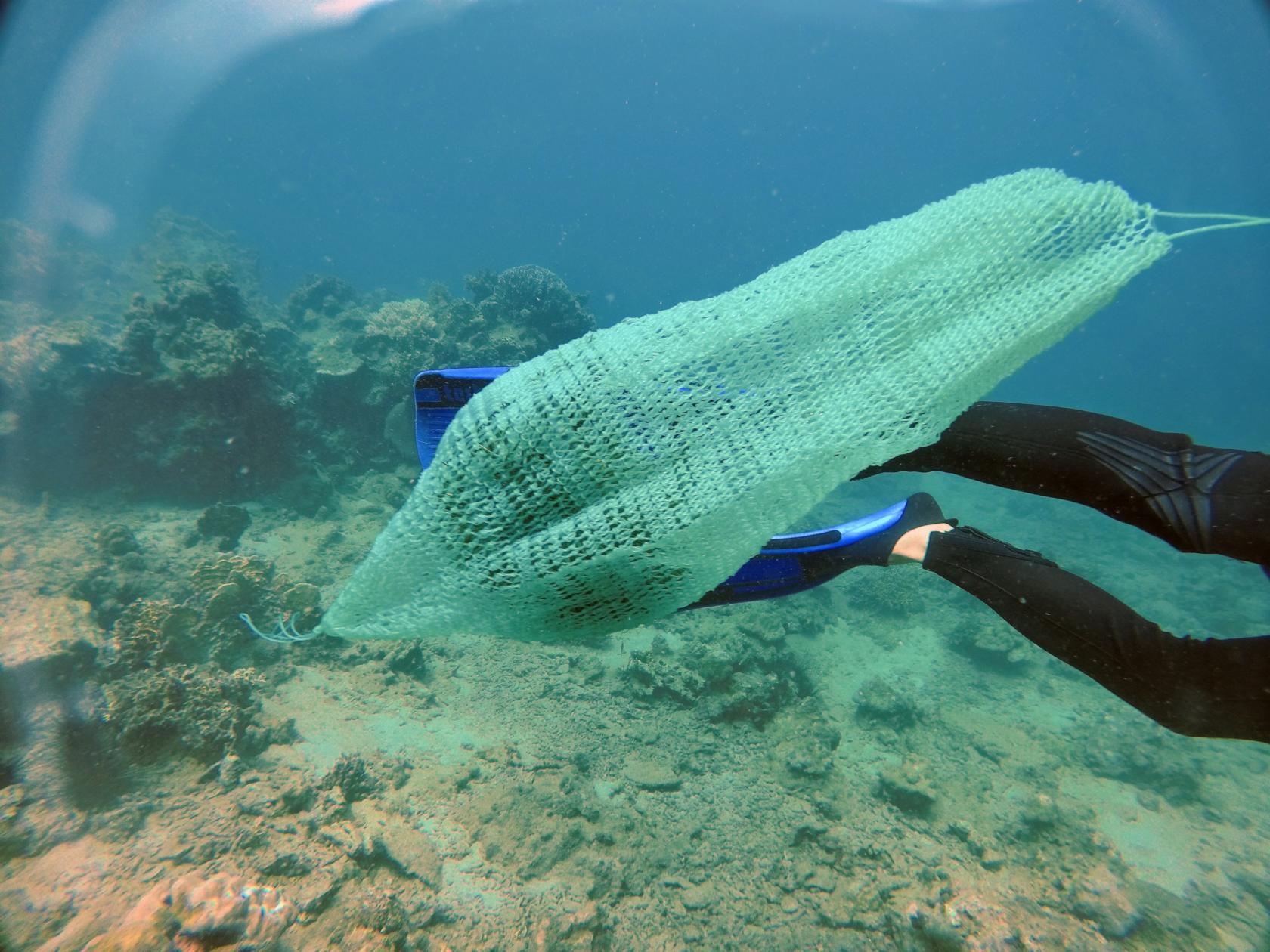 Túi rác đang được gom khi lặn