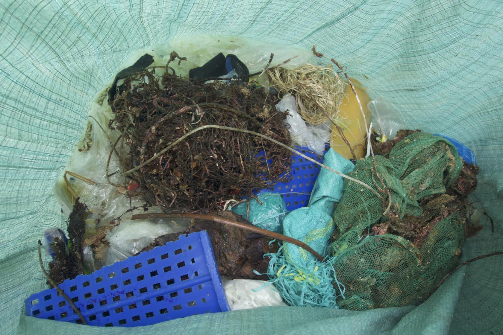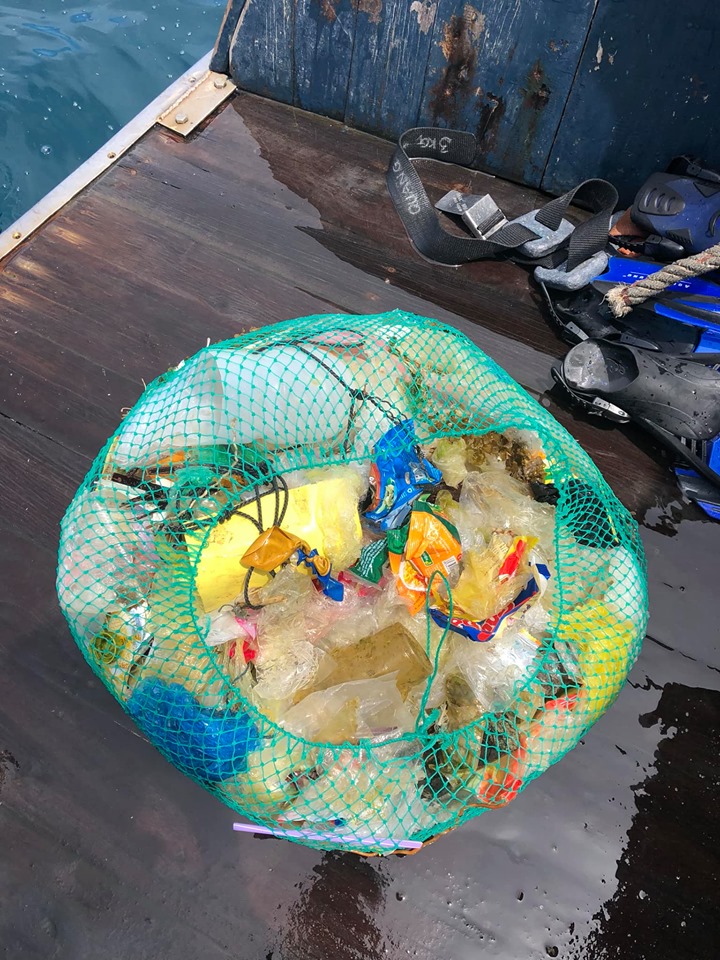 Một túi rác 1 nhóm lặn gom về sau ca lặn đầu tiên